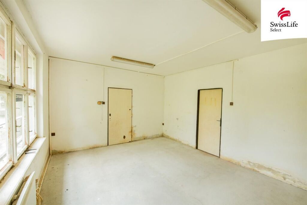 Přízemí: prostorná dílna (77 m) s vysokými vraty, 2 sklady, šatna a sociální zázemí
