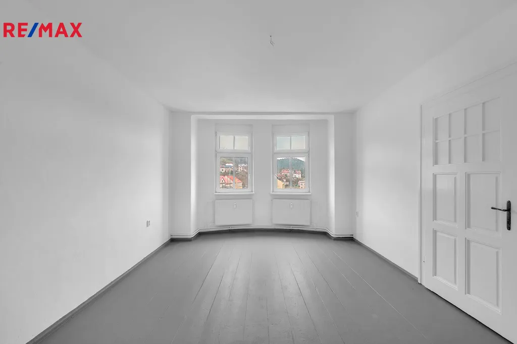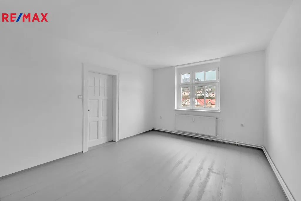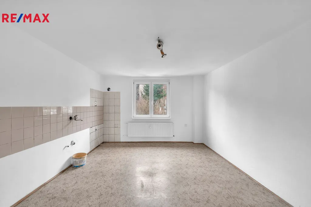 3. NP: Byt 3+1 s balkónem (112 m²), koupelna s vanou, samostatné WC, ohřev vody elektrickým bojlerem, plastová okna. Z chodby je přímý vstup na balkón. Aktuálně dlouhodobě pronajatý nájemníkovi.