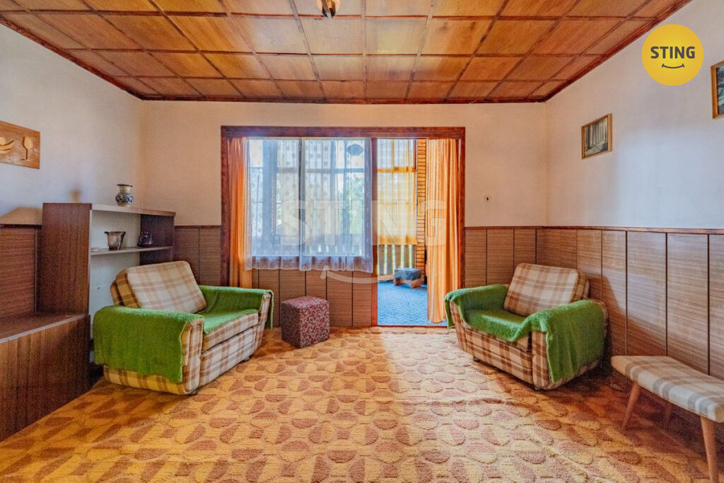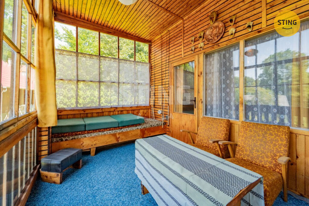 Obytná část: Nad celopodsklepenou částí se nachází obytná dřevěná část, která zahrnuje zasklený balkón s krásným výhledem do okolní přírody a dvě místnosti s kuchyňským koutem. Tento prostor je ideální pro rodinné rekreace nebo víkendové úniky z městského shonu.