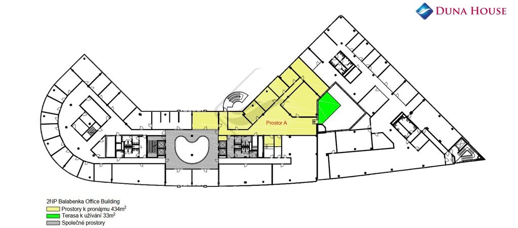 Kancelářské prostory o rozloze 473 m2 se nacházejí ve 2. NP a součástí je i soukromá terasa o velikosti 33 m2.