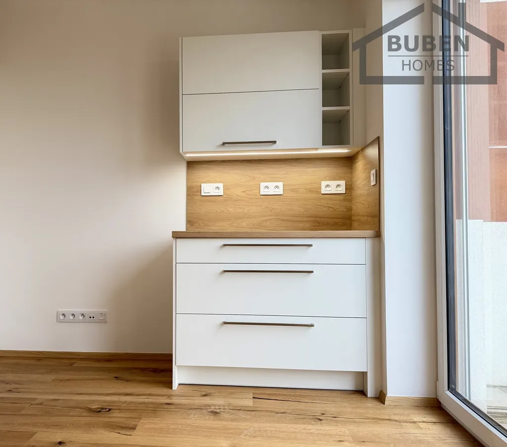 V ceně je zahrnuta kuchyňská linka včetně vestavěných spotřebičů (sklokeramická varná deska, horkovzdušná trouba, myčka). K bytu je možné dokoupit kryté parkovací místo v suterénu domu (vjezd zajištěn vraty na dálkové ovládání). V současné době je byt v rekonstrukci, bude kompletně připraven k bydlení v nadstandardním provedení.