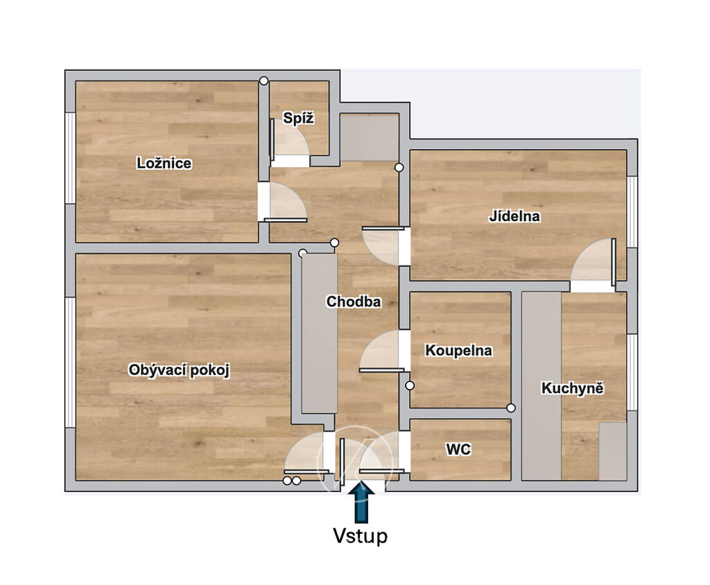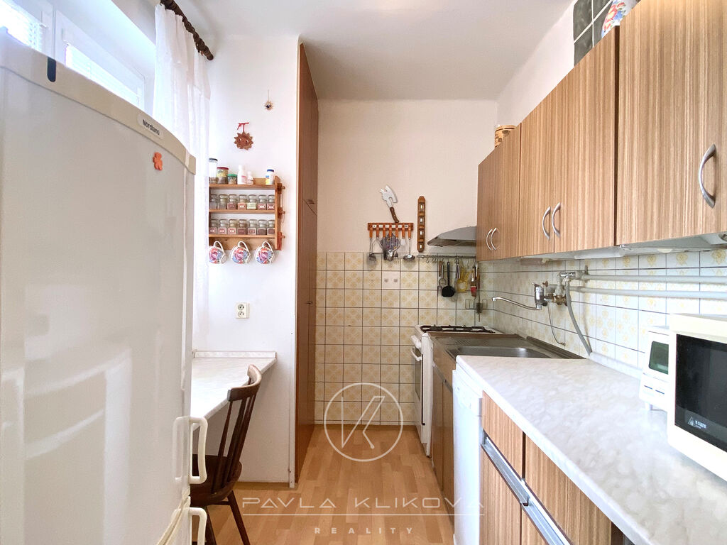 Byt zaujme svou prostorností a promyšleným řešením. Součástí je samostatná jídelna navazující na kuchyň, světlý obývací pokoj, ložnice a praktická komora, kterou lze využít jako šatnu. Koupelna se sprchovým koutem a pračkou, WC samostatné. Velkou výhodou je prostorná chodba s vestavnými skříněmi, která nabízí dostatek úložného prostoru.