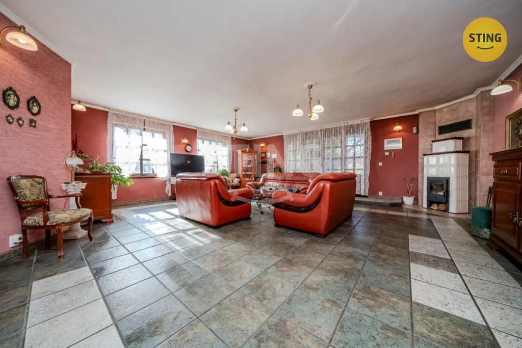 Tento dům nabízí komfortní bydlení s promyšleným dispozičním řešením. Prostorný obývací pokoj propojený s kuchyní, vytváří útulnou atmosféru, kterou umocňují kachlová kamna. Podlahové topení zajišťuje příjemnou tepelnou pohodu v domě, dlažba v celém přízemí. Masivní dveře včetně zárubní vyhotoveny na míru s klikami tzv. "Stará Vídeň" , toto označení znamená esenci rustikálního stylu plného zdobných prvků a tradiční elegance.