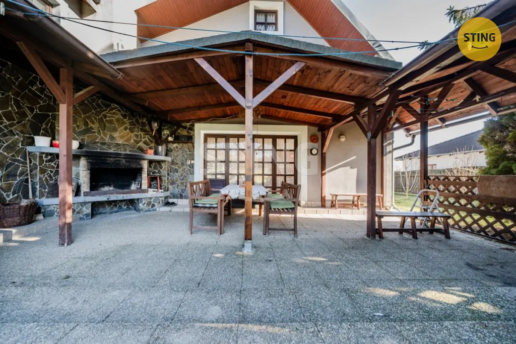 Přízemí - kuchyně s kuchyňskou linkou na míru zn.Sýkora s vestavěnými spotřebiči, jídelní kout, obývací pokoj s kachlovými kamny a se vstupem na pergolu s krbem a posezením, koupelna s toaletou a bidetem, technická místnost a vstup do garáže či dílny. V celém přízemí jsou podlahy pokryty kvalitní dlažbou od Hlocha.