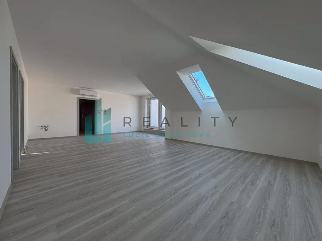 Hledáte bydlení, které vám vyrazí dech? Tento nadstandardní podkrovní byt v nově zkolaudované Rezidenci Grůska ve Strážnici nabízí něco, co jinde nenajdete: obrovskou terasu o rozloze 57,65 m². To je prostor odpovídající menšímu bytu 2+kk, který máte jen pro sebe pod širým nebem.