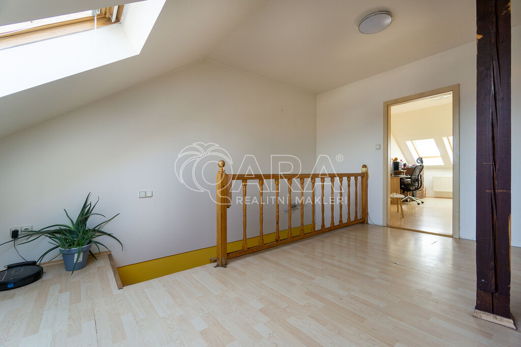 Byt disponuje částečným vybavením a prošel nedávnou renovací, v rámci které byla instalována plastová okna, nová koupelna a WC. Koupelna je vybavena vanou. Okna jsou orientována na jiho-západ, což zajišťuje dostatek přirozeného světla a příjemnou atmosféru v celém bytě. V horním podlaží lze zrekonstruovat z prostorné chodby další místnost ( kancelář, pokoj atd).