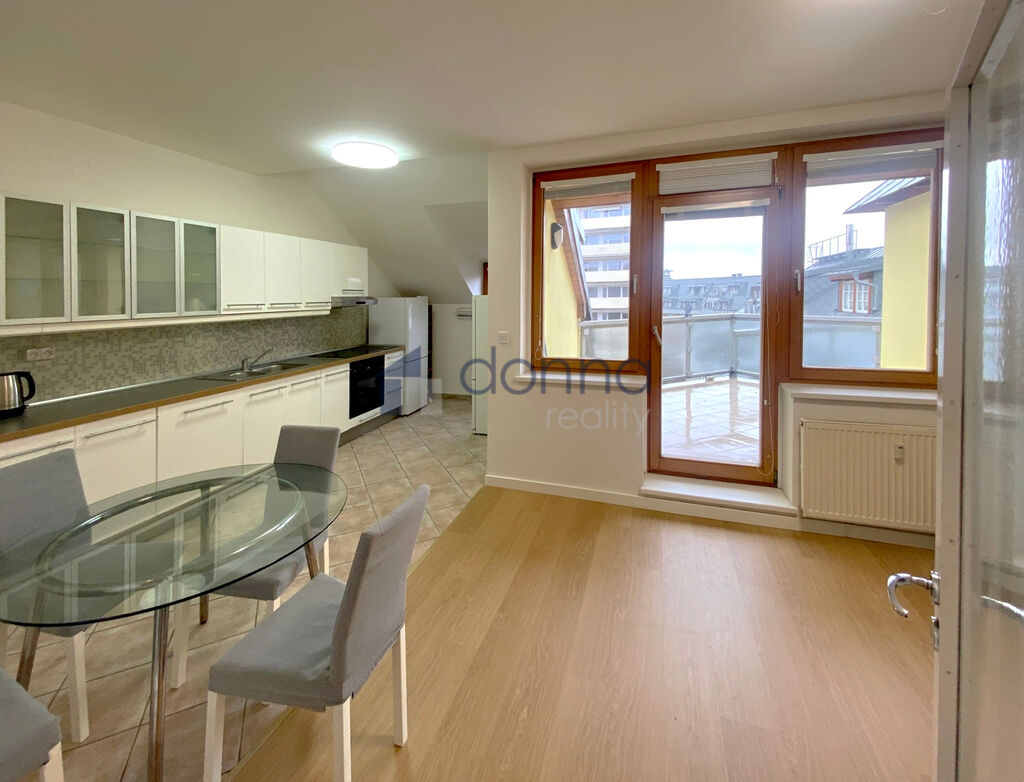 Nabízíme pronájem podkrovního mezonetového bytu 3+kk, 124 m2 + terasa 10m2, který je umístěný v 6. patře a 7. patře cihlového domu s výtahem, ulice Křenova, Praha 6 - Petřiny, v těsné blízkosti metra A Petřiny.
