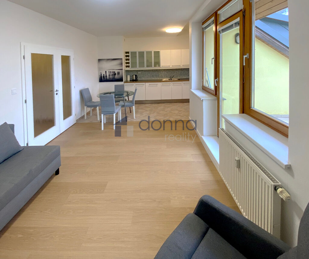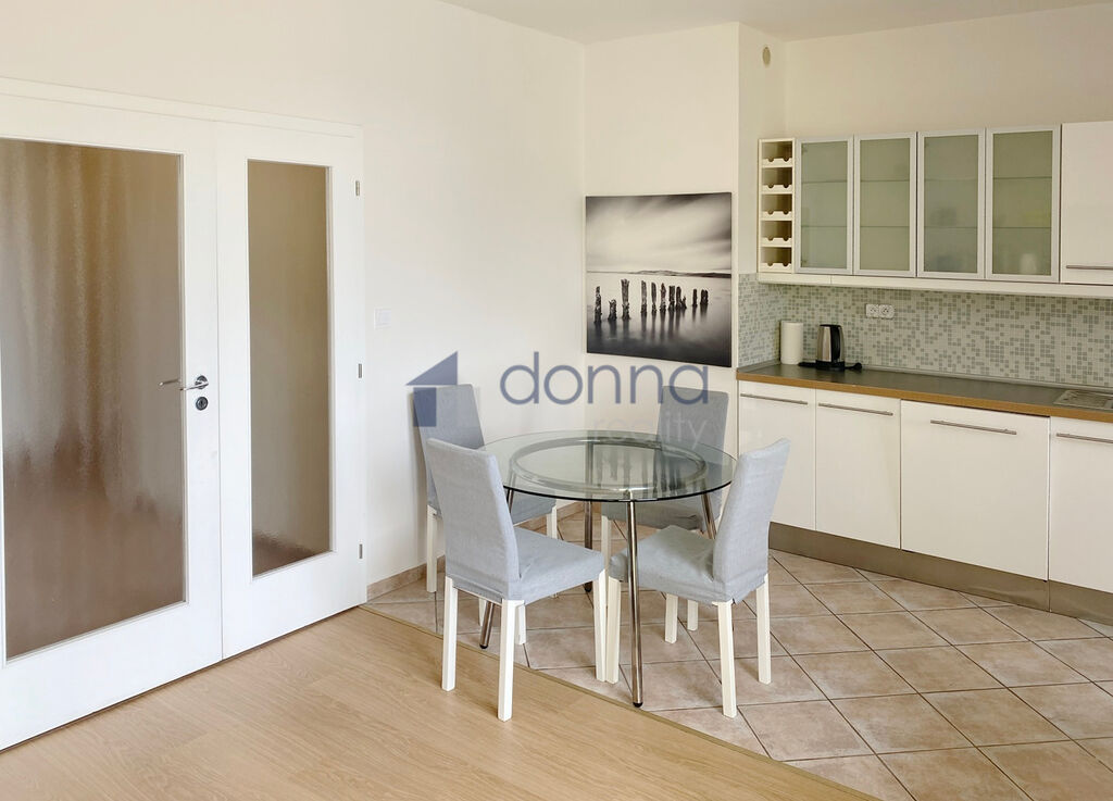 Byt je vybavený nábytkem, který je k vidění na fotografiích. Součástí nájmu je jedno parkovací stání v suterénu domu.
