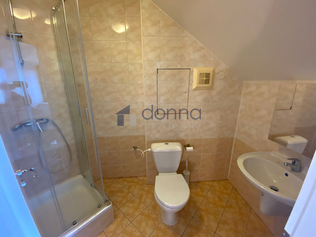 Horní patro - horní část bytu nabízí zajímavý a velký otevřený prostor (46,5m2) s vlastní koupelnou, sprchovým koutem a toaletou. Toto horní patro je oddělené a uzavřené dveřmi.