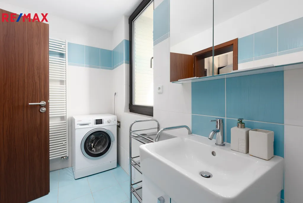 Díky francouzským oknům je byt krásně prosvětlený a nabízí úžasný výhled. Pro ještě větší komfort jsou okna vybavena žaluziemi, které chrání byt před přehříváním a umožňují regulovat množství denního světla podle potřeby.