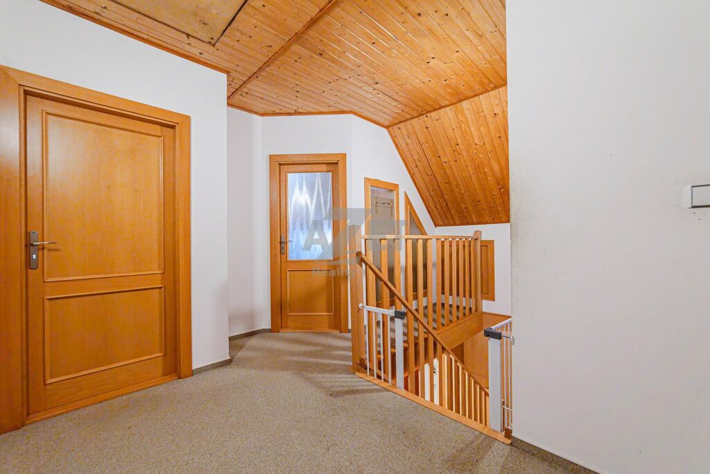 2.NP - 100,61 m2 - hala se schodištěm, dva dětské pokoje, ložnice, pokoj nyní sloužící jako třetí dětský pokoj - původně koupelna s wc, místnost lze opětovně předělat a úložné prostory v šikminách střechy