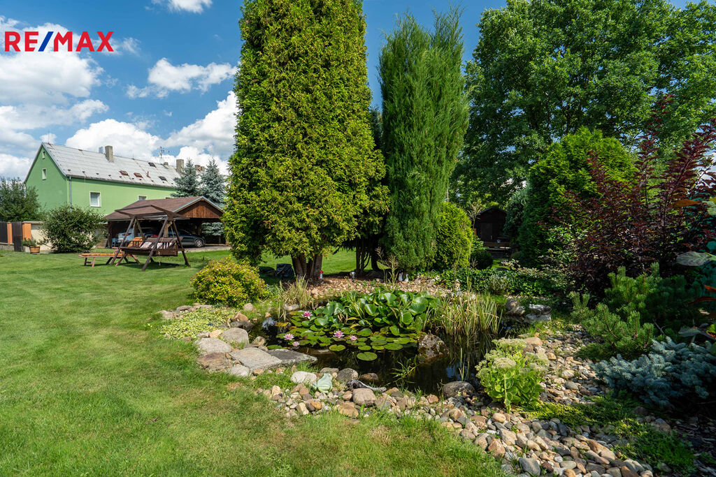 Rozlehlá zahrada s automatickým systémem zavlažování je nejen vizuálně krásná, ale také prakticky řešená . Najdete zde grilovací zónu, malé jezírko a dostatek prostoru pro relaxaci i rodinné aktivity.