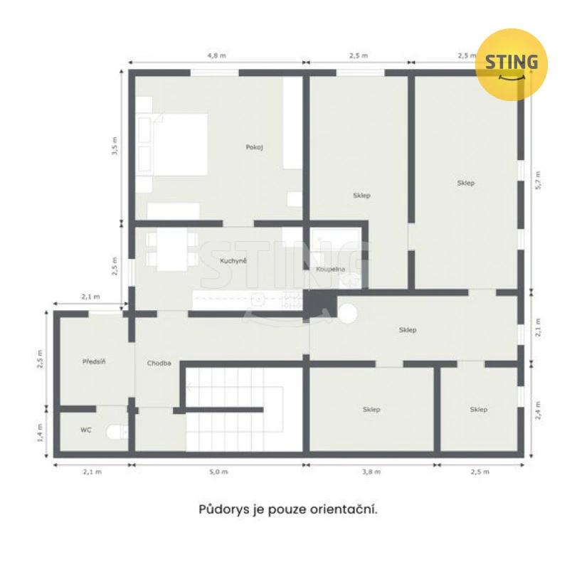 Prostory před rekonstrukcí. Vhodné jako kanceláře či sklady v 1.NP, kanceláře či k bydlení 2.NP. Výborná lokalita se skvělou dostupností, blízko hranic s PL (nájezd na D48 s návazností na I/48 (E462) Polsko.