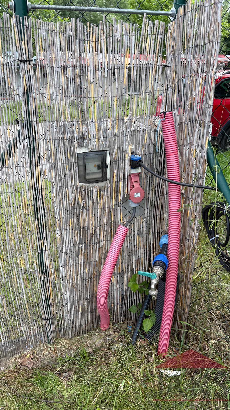 Voda: vlastní vrtaná studnu (hloubka 25 m; 5 m3/den) vč. čerpadla;
