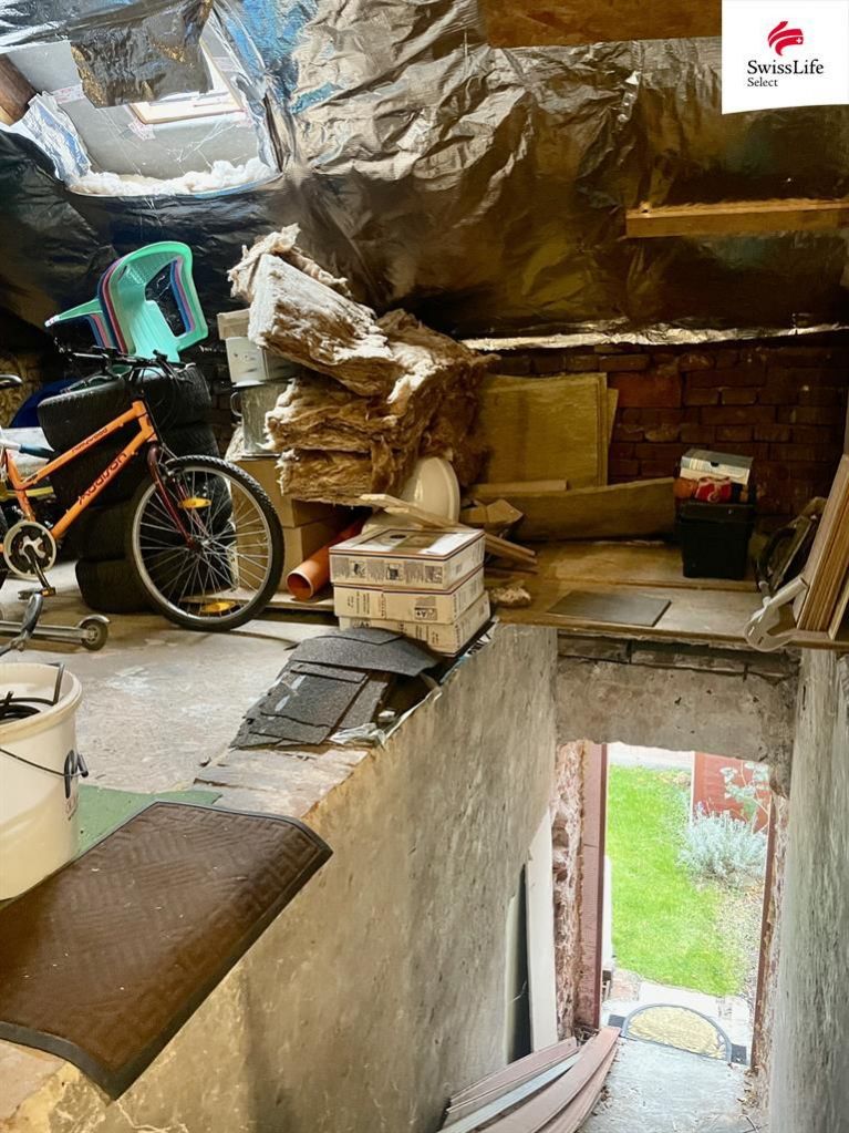 Byt má svoje kouzlo, je netradiční a zajímavý. Zahrádka za domem je na městském pozemku, sousedí s dvěma dalšími byty, kdy tento je uprostřed.