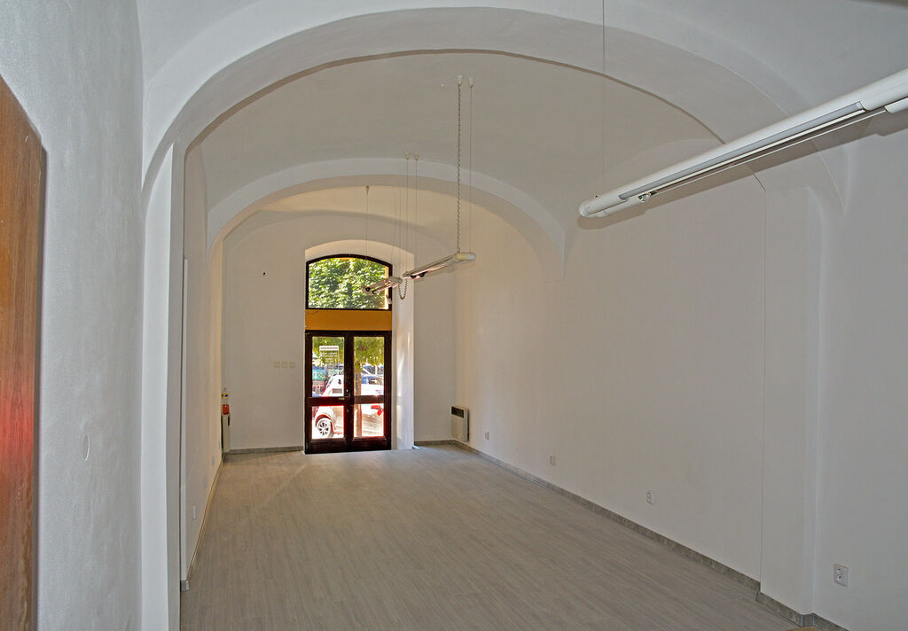 Domybyty.com Vám exkluzivně nabízejí pronájem nebytového prostoru (obchodu) 32 m2 v přízemí na Resselově náměstí v Chrudimi, který byl v r. 2025 zcela zrekonstruován (nové omítky, rozvod elektřiny, podlaha PVC). Za obchodem o výměrech 9,3 x 3,4 m je dřevěnou stěnou z masívu oddělený prostor (9 m2) pro kuchyňskou linku s přípojkou vody a odpadu. Na konci chodby v domě je WC. Elektřina 230 V, veř. kanalizace, vytápění třemi el. přímotopy. Vhodné i jako kancelář nebo sídlo firmy. Záloha na platbu vodného a stočného se hradí pronajímatelovi. Měsíční nájemné 10.000 Kč + el. energie, která se u dodavatele převede na nájemce, kauce 10.000 Kč. Volné ihned. Energetická třída G (ze zákona povinně uváděný neodpovídající údaj).