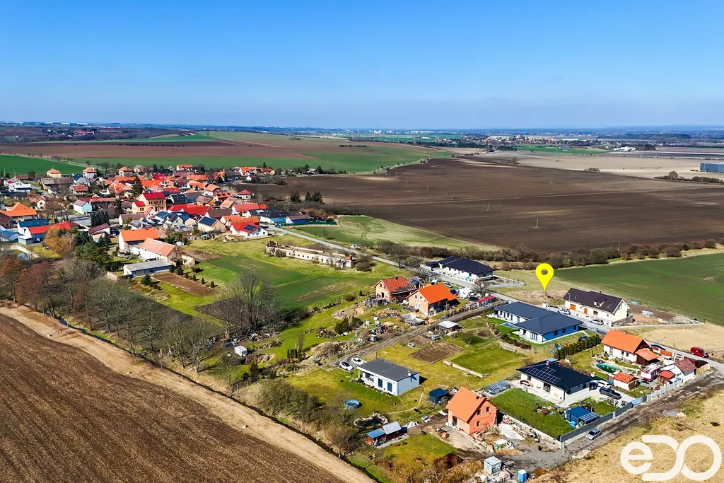 Pozemek se nachází v okrajové, klidné části obce, s výhledem do volné krajiny. Zároveň však nabízí velmi dobrou dostupnost do Prahy, zejména díky blízké dálnici D11 a vlakovému spojení z nedalekých Poříčan.