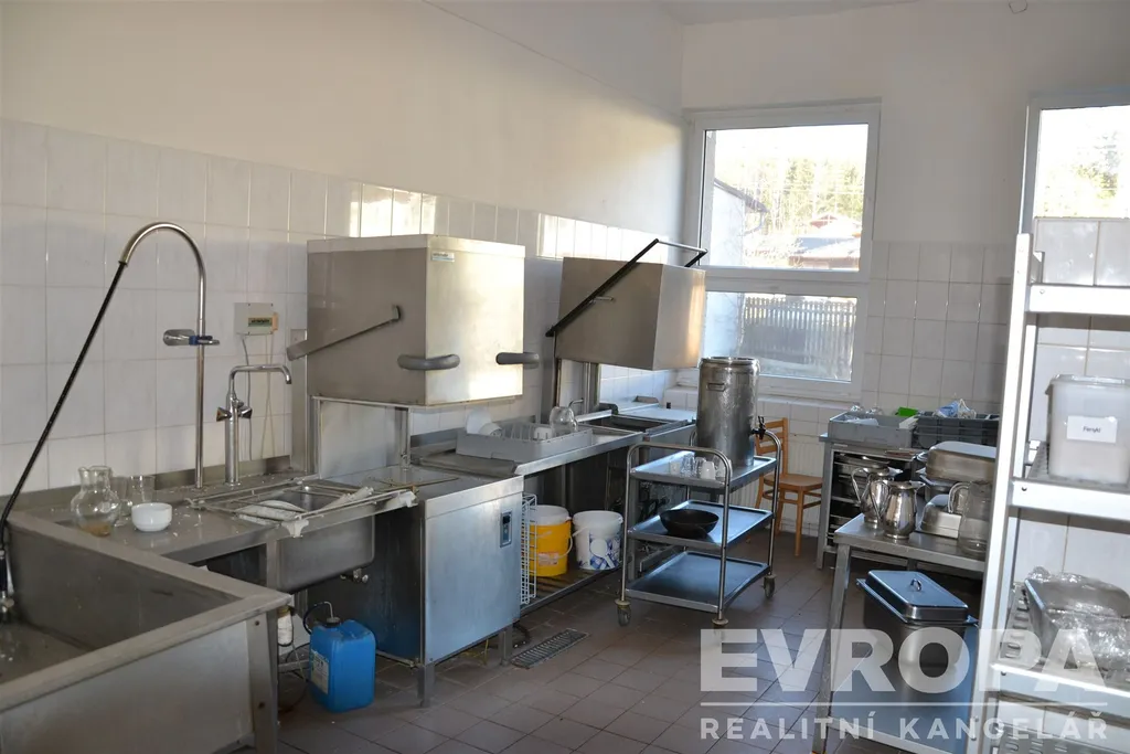 V exkluzivním zastoupení majitele nabízím k prodeji areál bývalé školy v přírodě zvaná Sklárna, který se nachází v klidné lokalitě uprostřed lesa vzdálené cca 6 km po asfaltové komunikaci od obce Žihle v okresu Plzeň – sever. Areál postavený v letech 1979 až 1981 se skládá z několika samostatných objektů, má vlastní technické zázemí v podobě kotelny na dřevoštěpku, vlastní vodárnu, několik studní, vlastní čistírnu odpadních vod a trafostanici. Jádro tvoří ubytovací objekty označeny jako A, B a C, které jsou propojeny vytápěnou chodbou s objektem školy, tělocvičny a jídelny s plně vybavenou kuchyní. Celý areál je výjimečný velikostí pozemků celkem 84.978 m2 a ubytovací kapacitou celkem až 350 lůžek. Všechny 3 ubytovací objekty jsou plně podsklepeny, mají společné prostory, sklady, kanceláře, oddělené umývárny a toalety. 2 objekty jsou čtyřpodlažní, jeden pětipodlažní. Objekty A a B jsou v původním stavu. Objekt C je po rekonstrukci, která proběhla v roce 2008, kdy byla provedena oprava střechy, výměna skel, zateplení obvodového pláště, úprava interiéru, vybudování sociálních zařízení v pokojích a nové vybavení pokojů. Objekty A a B již nevyhovují současným standardům a je třeba jejich rekonstrukce včetně kompletního technického zázemí celého areálu.