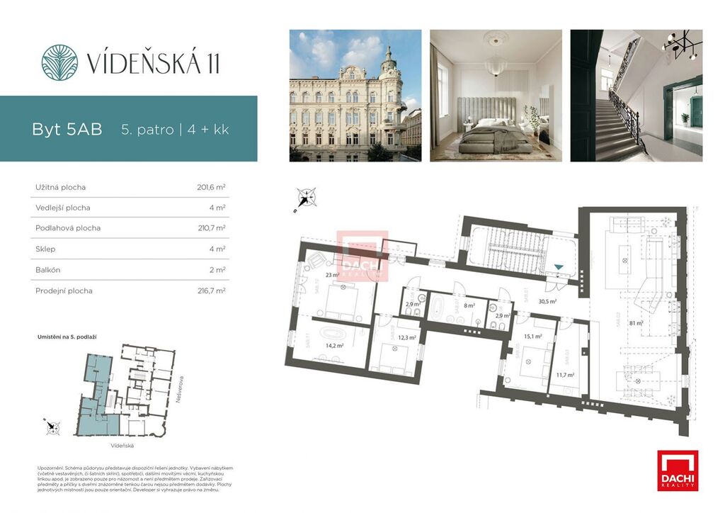 Jako výhradní prodejce Vám s potěšením představujeme skutečný klenot rezidenčního bydlení penthouse 5AB. Jedná se o největší a nejluxusnější byt v citlivě zrekonstruované neobarokní budově z roku 1899, v jedné z nejkrásnějších částí Olomouce na rozhraní centra města a Smetanových sadů. Penthouse je určený výhradně těm, kteří hledají naprostý vrchol pohodlí, estetiky a soukromí.