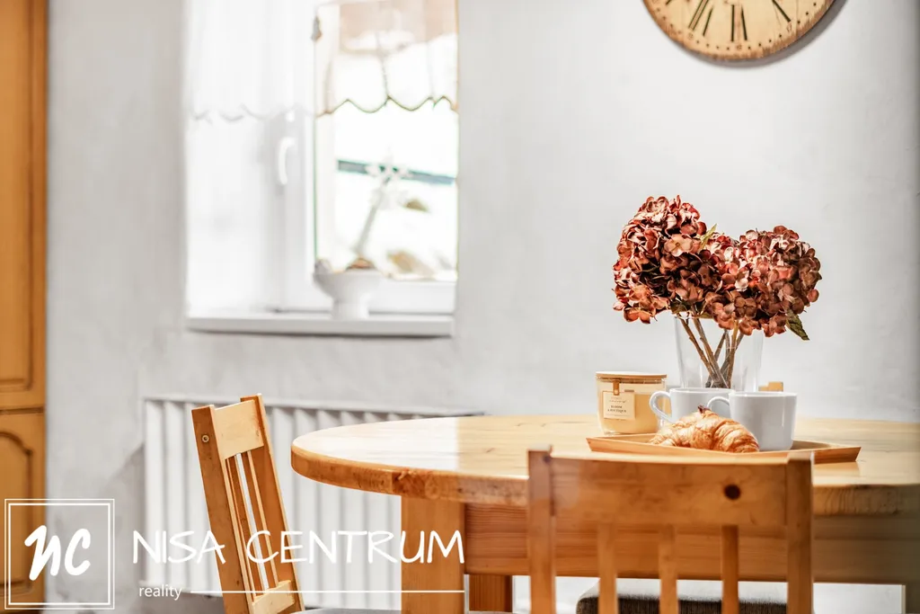 Dům je podsklepený. V přízemí se nachází kompletně vybavená kuchyň s kuchyňskou linkou, obývací pokoj průchozí do pokoje s výstupem na venkovní terasu, koupelnu s vanou a sprchovým koutem, samostatnou toaletu. Dvě prostorné místnosti v podkroví pak poskytnou další možnosti využití prostoru. K dispozici je také dílna, komora a kotelna. Nemovistost prošla částečnou rekonstrukcí.