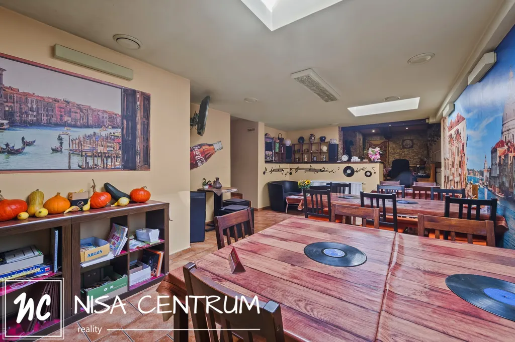 V přízemí domu se nachází dvě restaurace, kuchyň, 2x WC, personální WC. V 1. patře jsou čtyři pokoje, 3 x pokoj s koupelnou a WC, 1x pokoj bez příslušenství.