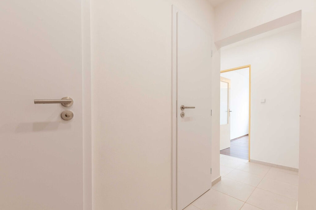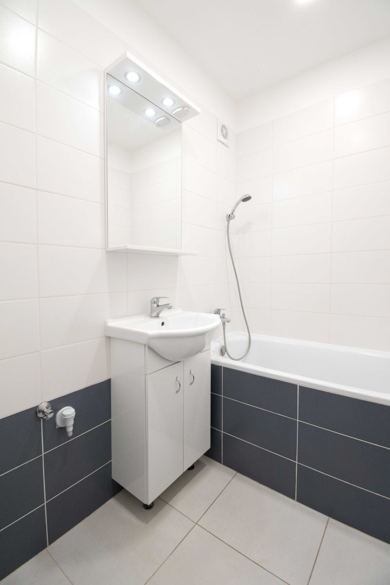 Byt se nabízí částečně vybavený. Moderní kuchyňský kout disponuje elektrickou troubou, sklokeramickou deskou, digestoří, lednicí s mrazákem a myčkou nádobí. Prostorná ložnice a obývací pokoj jsou nevybavené. Koupelna po rekonstrukci je vybavena umyvadlem, skříňkou, zrcadlem a toaletou. V koupelně se také nachází přípojka na pračku.