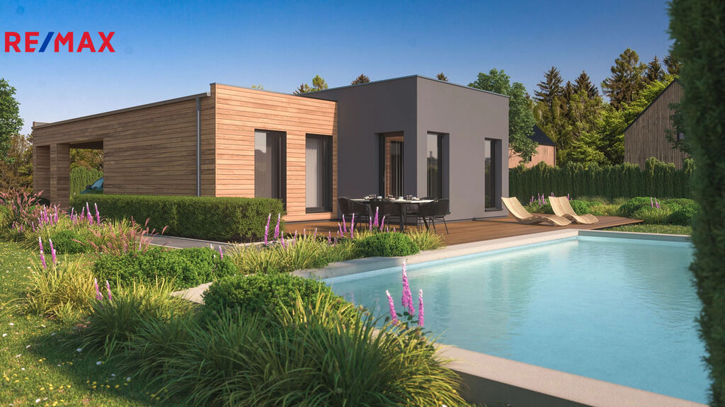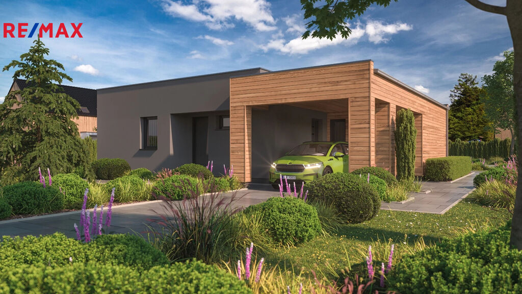 Nízkoenergetická novostavba rodinného domu se zárukou 30 let! Ve spolupráci s předním německým výrobcem dřevostaveb firmou Haas-Fertigbau nabízíme novostavbu rodinného domu 4+kk s garážovým stáním ve Velaticích 5 km od Brna. Tento rodinný dům, který je projektován na pozemku o celkové výměře 743 m2 v klidné části obce Velatic, je navržen jako přízemní s plochou střechou. Nízkoenergetická dřevostavba na klíč, s důrazem na nejvyšší kvalitu použitých materiálů a provedených prací. Užitná plocha RD je 137 m2 + terasa, celková zastavěná plocha domu je 180 m2. Orientace obytných místností je navržena směrem do zahrady. Dispozičně je dům řešen jako 4+kk s velkým společným prostorem Z obytného prostoru je francouzskými okny zpřístupněna pobytová terasa na zahradě. Vytápění zajištuje tepelné čerpadlo vzduch/voda a je řešeno jako podlahové v celém domě, díky čemuž má dům velmi nízké náklady na provoz při dnešních cenách energií. Spotřeba energie na vytápění je 12,7 MWh/rok! Záruka na konstrukci domu je 30 let! Možnost dodávky RD ve stupni hrubá stavba, k dokončení nebo na klíč. Info o ceně získáte u našeho realitního makléře .Cena RD zahrnuje pozemek, výstavbu RD ve zvoleném stupni dokončení - základová deska, připojení na sítě, samotná stavba RD, stavební povolení, právní služby a DPH. Možnost změn dle přání zákazníka nebo jiný dům z naší nabídky.