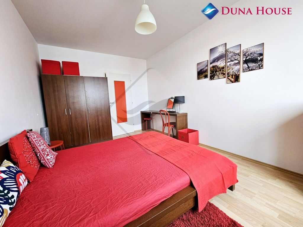 Po vstupu do bytu se nacházíte v prostorné předsíni s vestavěnou šatní skříní. Dominantou bytu je velký, světlý obývací pokoj propojený s moderním kuchyňským koutem, který nabízí dostatek úložného prostoru a je vybaven myčkou, elektrickou troubou, indukční varnou deskou a digestoří. Dále jsou zde dva samostatné neprůchozí pokoje, oba vybavené vestavěnými skříněmi. Koupelna je zařízena vanou a pračkou, toaleta je samostatná.