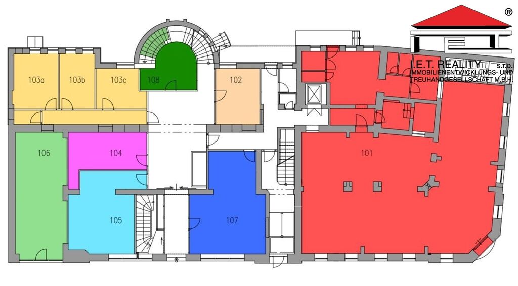 V přízemí Vám můžeme nabídnout dva reprezentativní obchodní prostory s velkou prosklenou čelní stěnou o velikosti 21 a 23 m² . Tyto prostory nabízíme za cenu 5880 Kč a 6 900 Kč/měsíc (300 Kč/m²) a cena služeb je 1869 Kč a 1 334 Kč + DPH.
