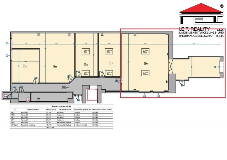 Nabízíme k pronájmu 3 nebytové prostory s celkovou plochou 131 m², které se nachází v přízemí obchodního centra Pracák a mají bezbariérový vchod. Budova OC je v těsné blízkosti železniční stanice ve Frýdku-Místku a přímo naproti Komerční Banky. První nabízená kancelář s plochou 16 m² je umístěná přímo naproti vstupu do budovy, vedle schodiště. Cena nájmu je 4 927 Kč/měsíc (308 Kč/m²) a cena služeb je 976 Kč + DPH. Druhá kancelář s plochou 24 m² má vlastní vchod ze společné chodby budovy. Cena nájmu je 5 483 Kč/měsíc (228 Kč/m²) a cena služeb je 2 169 Kč + DPH. Třetí nebytový prostor o velikosti 91 m² má vlastní velký vchod přímo z ulice a také vchod ze společné chodby budovy. Cena nájmu je 20 680 Kč/měsíc (227 Kč/m²) a cena služeb je 8 180 Kč + DPH. Nebytové prostory využívají společnou vybavenou kuchyňku a WC v budově. Parkování pro nájemníky je zajištěno na vlastním parkovišti se závorou, přímo za domem. Místnosti jsou napojeny na zabezpečovací systém napojený na SK Policie. Možnost pronájmu světelné reklamy přímo u vchodu na budově. V těsně blízkosti OC je dostatek parkovacích míst pro klienty. Doporučujeme osobní prohlídku.