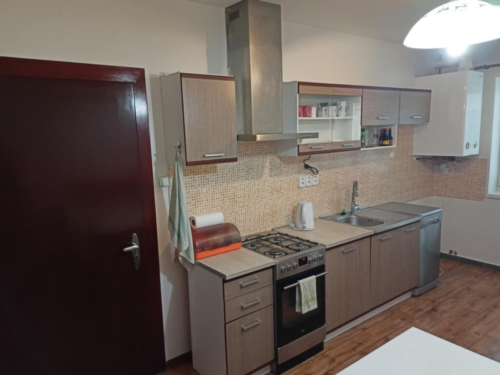 Byt se nabízí částečně vybavený. Kuchyně disponuje lednicí, elektrickým sporákem, mikrovlnnou a digestoří, jídelním stolem se židlemi. Obývací části dominuje krb dále je zařízen pohovkou, konferenčním stolem, tv stěnou. Součástí ložnice je postel. V koupelně je sprchový kout i vana, umyvadlo. Toaleta je umístěna samostatně.