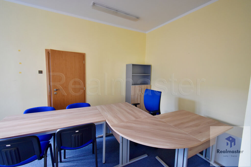 Tři patra kanceláří s vlastním zázemím, kuchyňkou a toaletou. Výtahem vyjedete až do třetího patra. Prostory jsou vybaveny kancelářským nábytkem, na podlahách jsou zátěžové koberce.