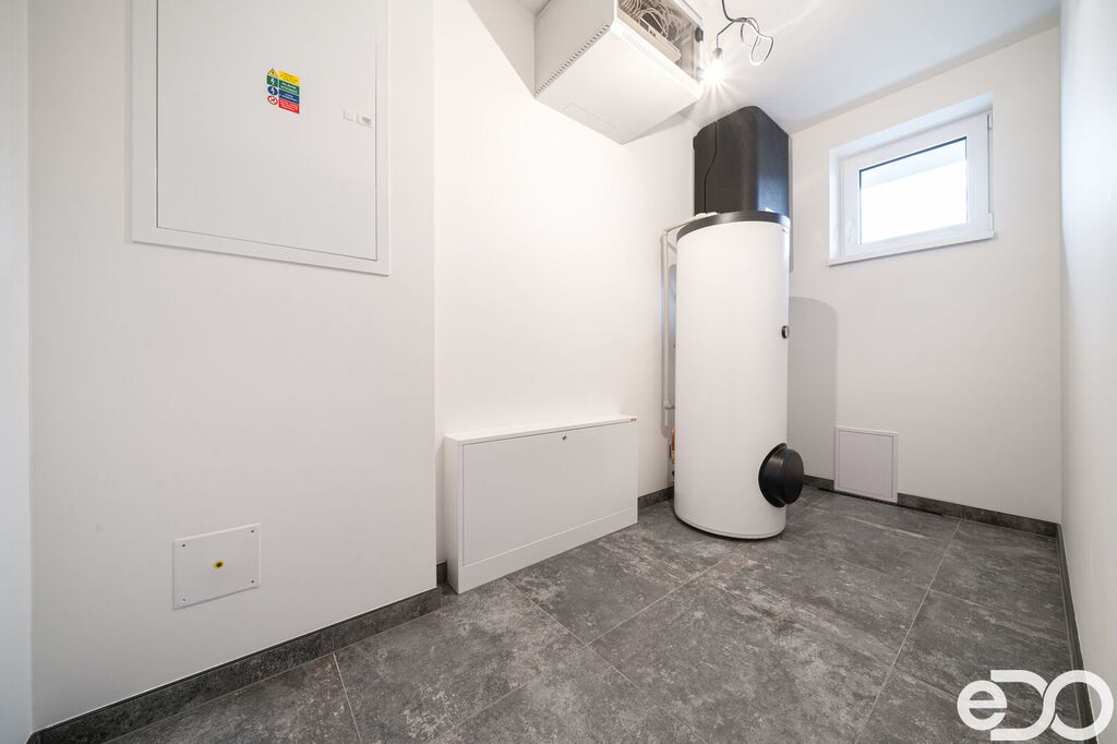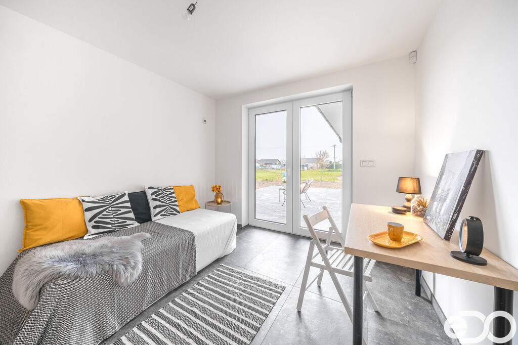Skvělá dispozice domu nabízí prostorný obývací pokoj s kuchyňským a jídelním koutem, kde se nachází na míru vyhotovená designová kuchyňská linka včetně špičkových spotřebičů francouzské značky DE DIETRICH: trouba, mikrovlnná trouba, varná deska, integrovaná digestoř v horní skříňce, plně integrovaná myčka a lednice s mrazákem. Ze strany kuchyně i obývacího pokoje je aplikována betonová stěrka a stěna je připravena na umístění jídelního stolu. Z velkolepého obývacího pokoje je vstup na venkovní terasu, kde si budete v klidu a pohodě užívat slunných dnů. V domě se dále nachází samostatná část zahrnující ložnici se šatnou a menší koupelnou se sprchovým koutem a toaletou, dva dětské pokoje, velká koupelna s vanou a toaletou a další místnost využívaná jako šatna nebo prádelna. Dostatečné prosvětlení ložnice a dětských pokojů zajišťují dvoukřídlová francouzská okna. Okna a dveře jsou plastová, zasklená izolačním trojsklem. Vytápění je zajištěno tepelným čerpadlem, v celém domě je teplovodní podlahové topení. Velkou přidanou hodnotou tohoto domu jsou venkovní žaluzie dělané na míru, které využijete ve dne i v noci a které chrání vaše soukromí a vytváří příjemné prostředí. Garážová vrata mají inteligentní pohon ovládaný mobilní SmartHome aplikací SOMweb. Dům je vybaven zabezpečovacím a kamerovým systémem JABLOTRON. Přívod pitné vody vodovodní přípojkou, kanalizační přípojka tlaková a dešťová akumulační jímka. Dům má valbovou střechu, s pochozím půdním prostorem. Venkovní povrch v okolí domu je řešen betonovou zámkovou dlažbou, která se nachází jak na zadní terase, tak na parkovacím stání před garáží a na chodnících kolem domu.