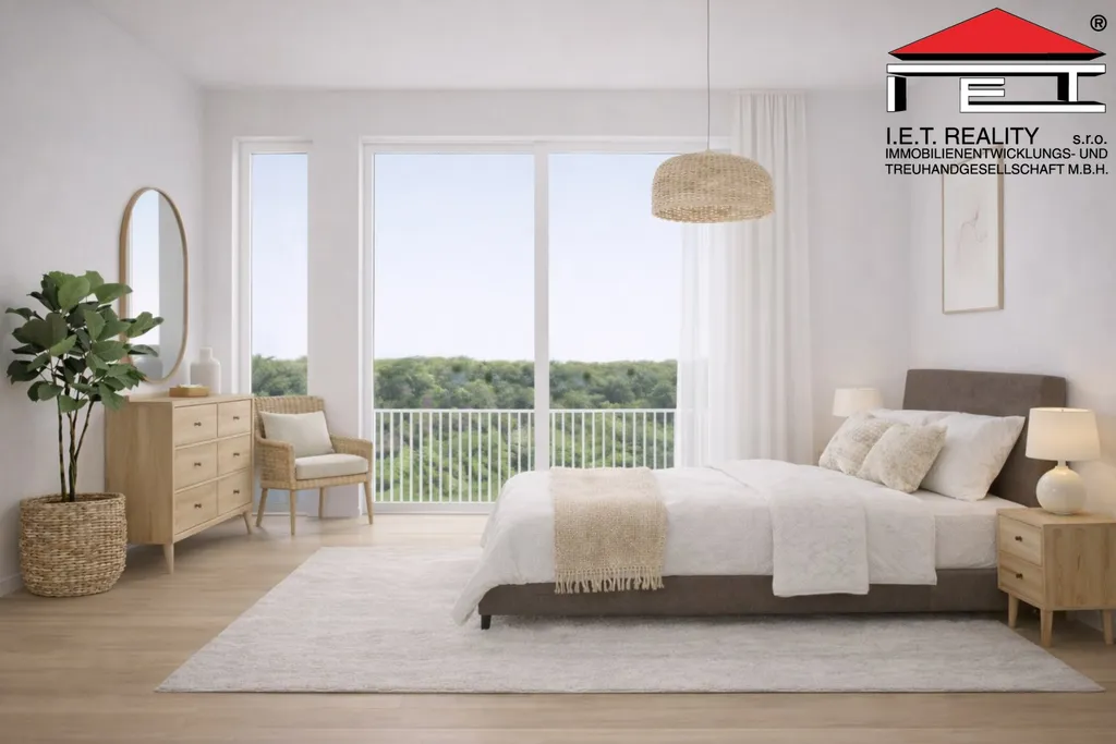 Prodej novostavby vilabytu č. 45, 3+kk, 89,6 m², se dvěma balkony 7,5 m² a 5,4 m², na něž je vstup možný ze všech pokojů. Jednotka je situovananá ve 2.NP čtyřpodlažního domu a její součástí je také sklep 5,7 m2.