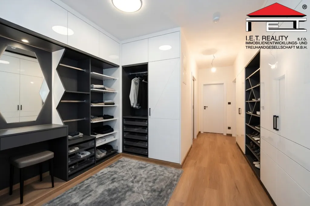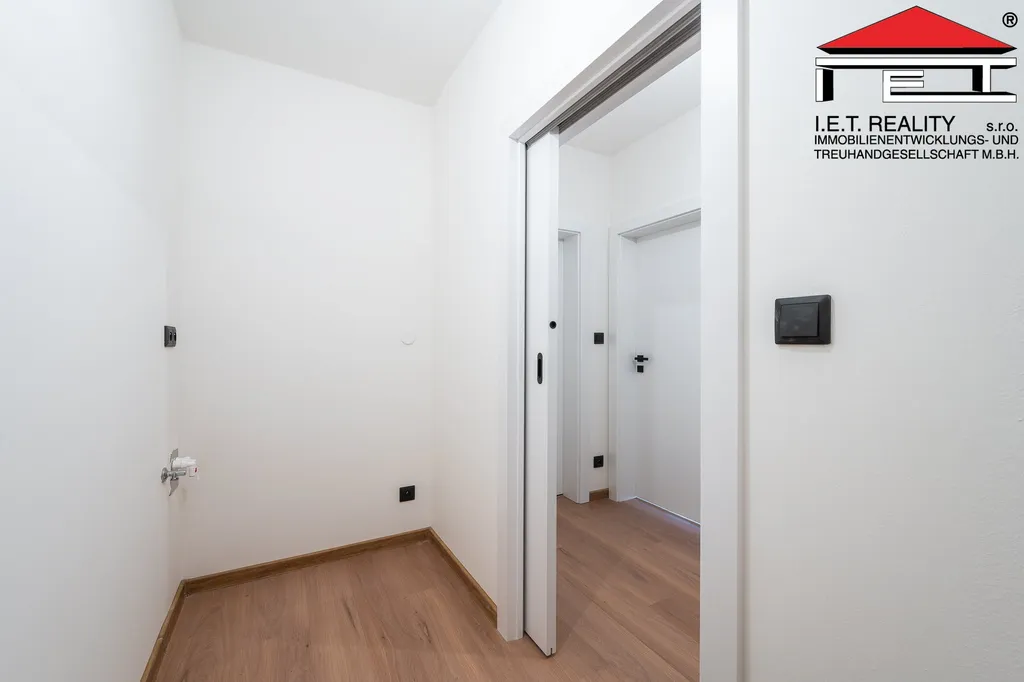 Po vstupu do bytu se nachází prostorná předsíň, ze které je zajištěn přístup do koupelny, wc a technické místnosti ( s možností úložného prostoru). Dále je vstup do obývacího pokoje s přípravou na kuchyňskou linku a s přímým vstupem po schodišti na velkou terasu.