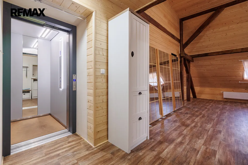 V přízemí je ideální místo pro krámek s regionálními produkty, recepci nebo útulnou kavárnu – s možností podávání snídaní pro hosty.