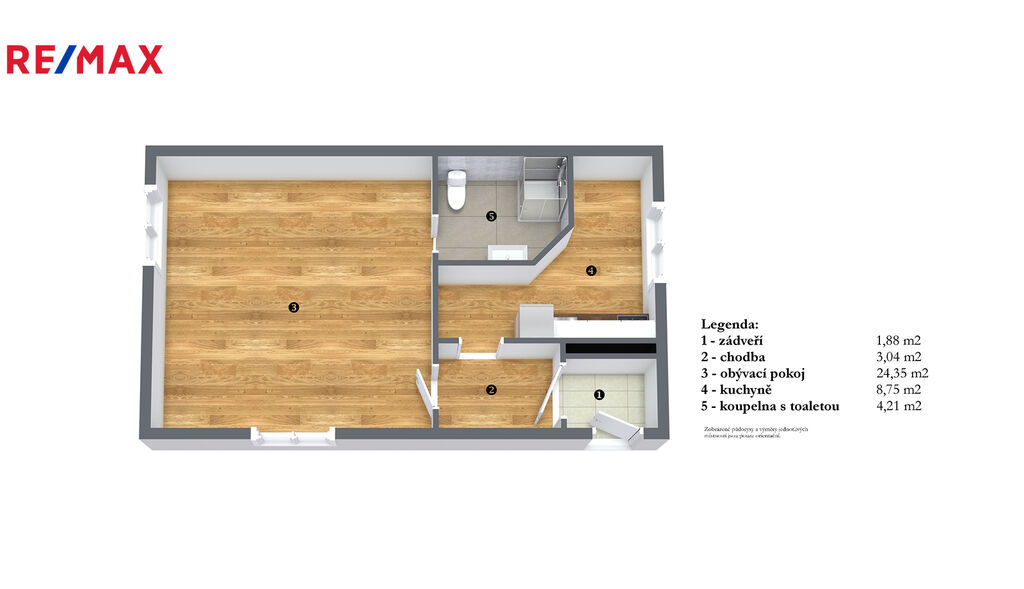 Byt 1+1 s užitnou plochou 42,2 m², který prošel před pěti lety kompletní rekonstrukcí. Může sloužit jako výměnek či je možnost propojení s bytem 3+1.