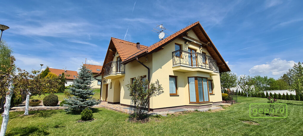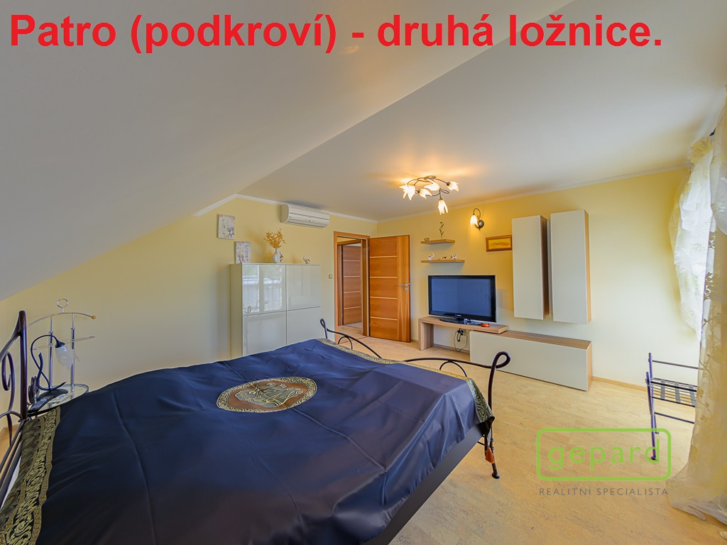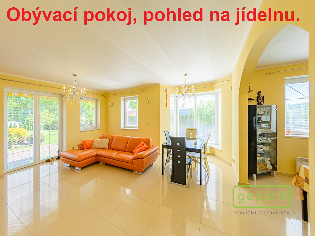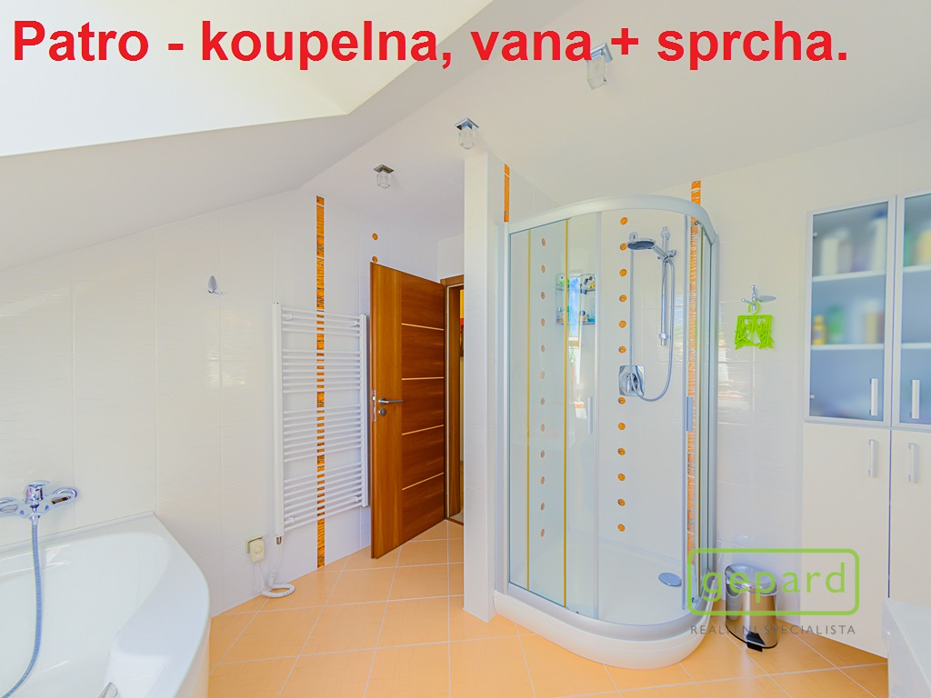 Dům je dále vybaven zabezpečovacím zařízením, videotelefonem, klimatizací, internetem a má také pergolu na dálkové ovládání. Od střešních oken VELUX po masivní dveře a obložky Sapeli, každý detail byl pečlivě promyšlen. Obvodové zdi POROTRHERM 40 cm + zatepleno.