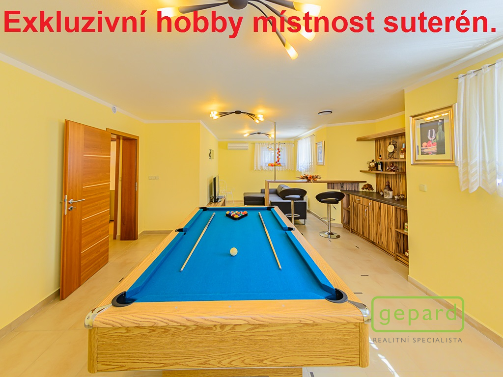 1/ Suterén obsahuje schodiště, chodbu, kotelnu/sklad, prádelnu, sklad a hobby místnost.