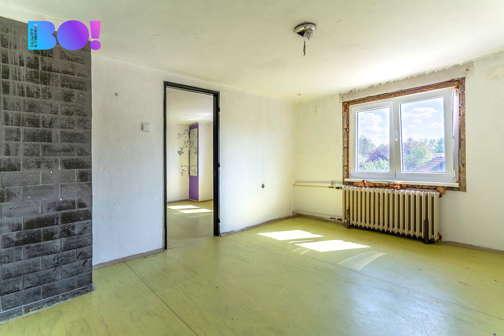 Interiér domu je rozdělen do čtyř pokojů, které nabízejí dostatek prostoru pro rodinné bydlení. Dům je v dobrém stavu, nicméně s možností úprav, což ho činí ideálním pro případné investiční záměry, jako například rozdělení na bytové jednotky. Nemovitost je napojena na místní zdroj vody a kanalizaci, což zajišťuje pohodlné a efektivní využívání těchto inženýrských sítí. Plyn je zaveden prostřednictvím plynovodu a elektrická přípojka poskytuje napětí 230 V. Topení je řešeno pomocí radiátorů a teplá voda je zajištěna elektrickým bojlerem.