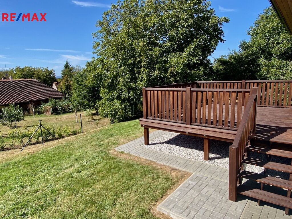 Moderní rodinný dům má zastavěnou plochu 225 m2 na slunném jižním pozemku o velikosti 1.106 m2 a je napojen na vodovod i kanalizaci. Zahrada je veliká a připravena k vlastní realizaci, příprava je i na zahradní domek a bazén. Jedná se o příjemné bydlení uprostřed přírody. Vše je velmi pečlivě realizováno s maximálním důrazem na kvalitu. Krb nejen sníží už tak nízké náklady na provoz, ale zároveň dokreslí pohodu domova.