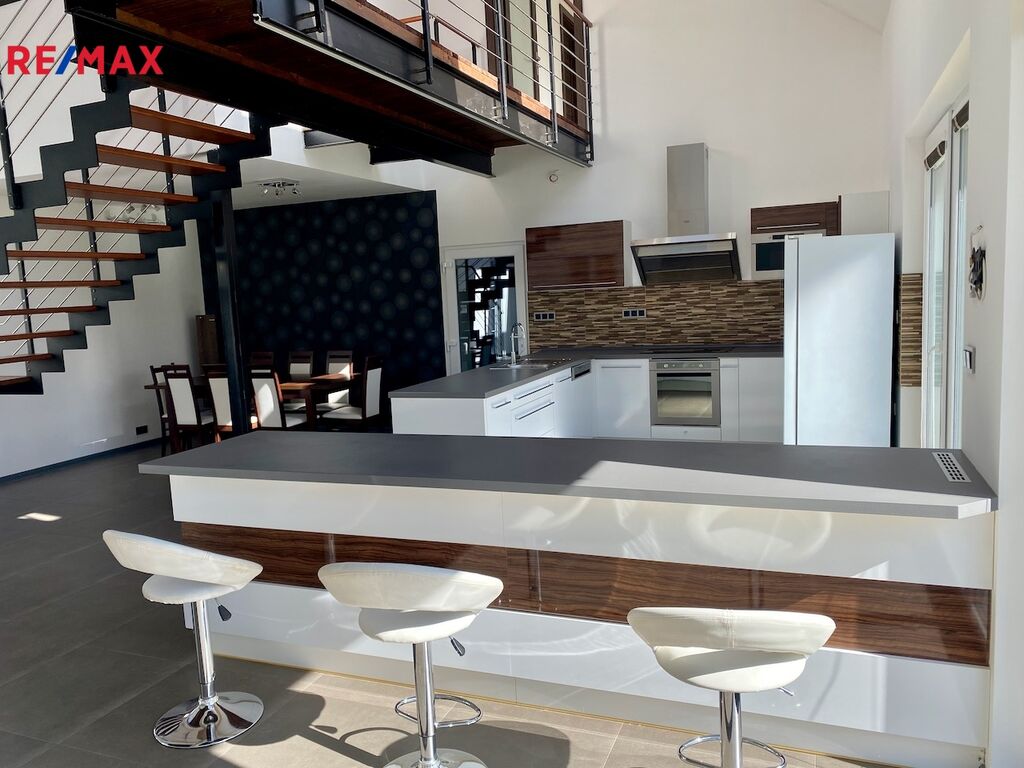 Jedinečně řešený nový dům ideálně propojený s okolní přírodou. Exkluzivitu nabídky umocňuje architektonické řešení interiéru - dům o užitné ploše 200 m2 je vzdušný a krásně prosvětlený. Srdcem domu je velký obývací pokoj s kuchyní a jídelnou o velikosti 92 m2, nad kterým je ochoz, který lze užívat např. jako pracovnu.