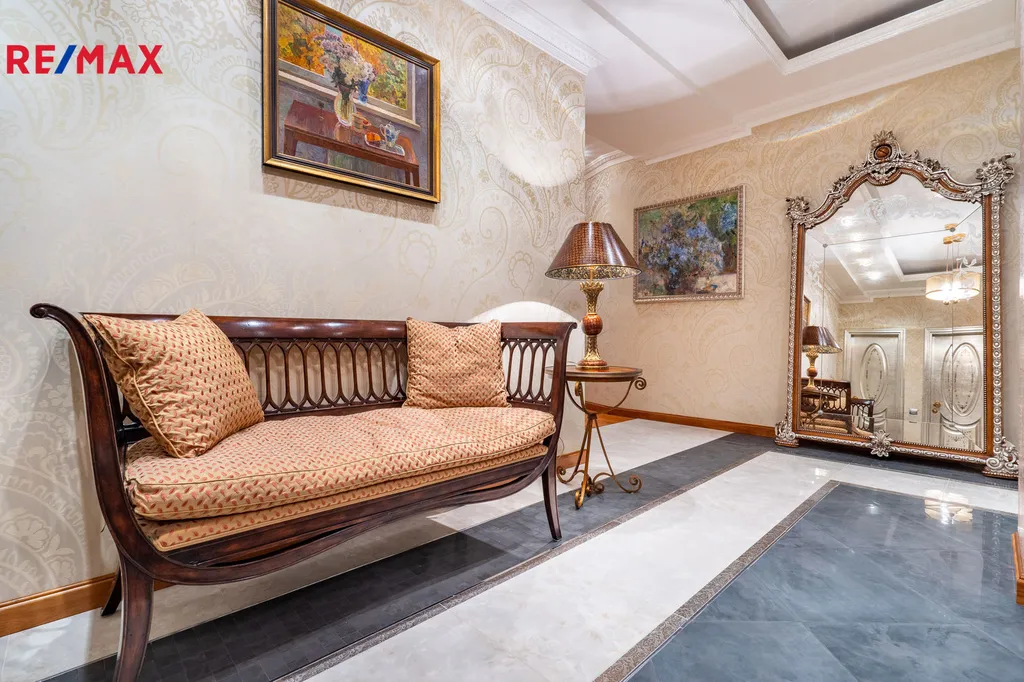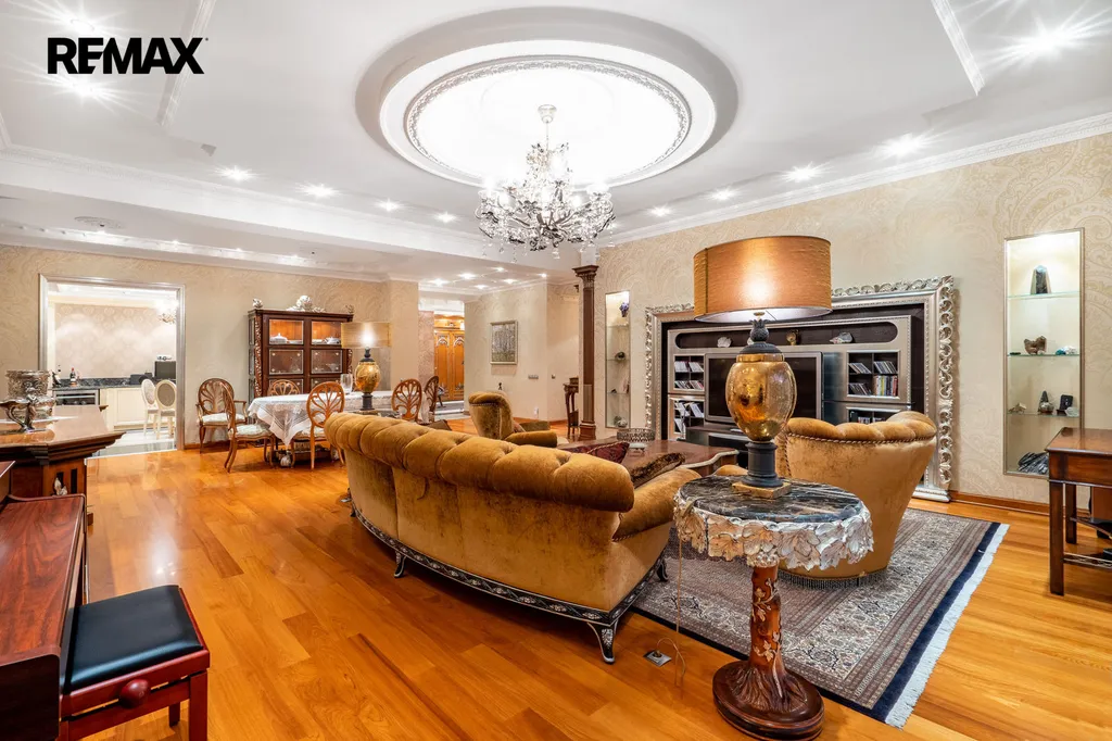 Luxusní bydlení v bytě s vysokými stropy a velkými okny, které poskytují