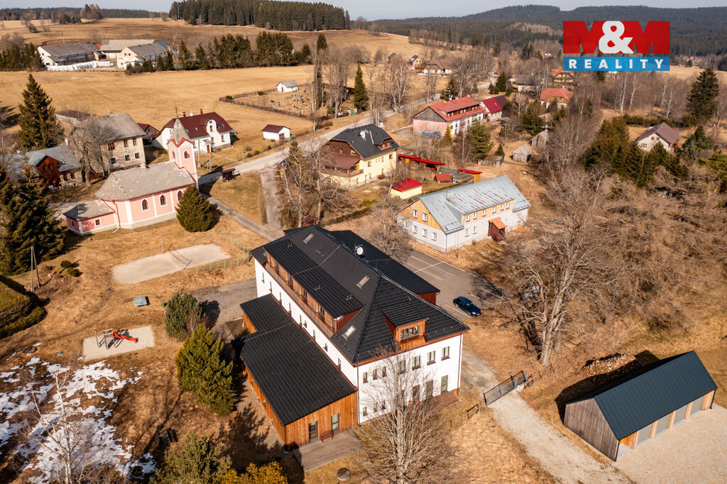 Nabízíme k prodeji nádherný apartmán v nově zrekonstruované cihlové budově v obci Nové Hutě, umístěné v klidné části Šumavy. Tento velmi dobře udržovaný byt 2+kk se nachází v 1. podlaží třípodlažního domu a nabízí užitnou plochu 60 m². Apartmán s dispozicí 2+kk zahrnuje prostorný obývací pokoj s kuchyňským koutem a ložnici. Strategická lokalita umožňuje možnost krátkodobých pronájmů s vysokým výnosem, což je ideální příležitost pro investory. Obec Nové Hutě je známá svoji malebnou přírodou a klidným prostředím. Nemovitost je ideální nejen jako stálé bydlení, ale i jako rekreační objekt. V Nových Hutích restaurace, lyžařské vleky, běžkařské a cyklistické trasy na všechny světové strany. Nezmeškejte tuto jedinečnou příležitost! Pro více informací nás neváhejte kontaktovat.