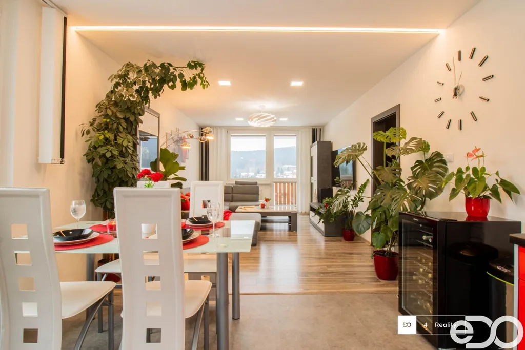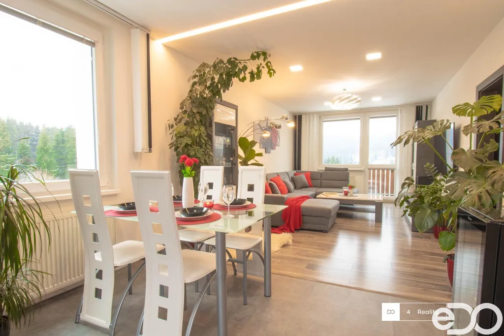 Realitní kancelář eDO Reality Vám exkluzivně nabízí moderní horský apartmán 3+kk o ploše 87,3m2.