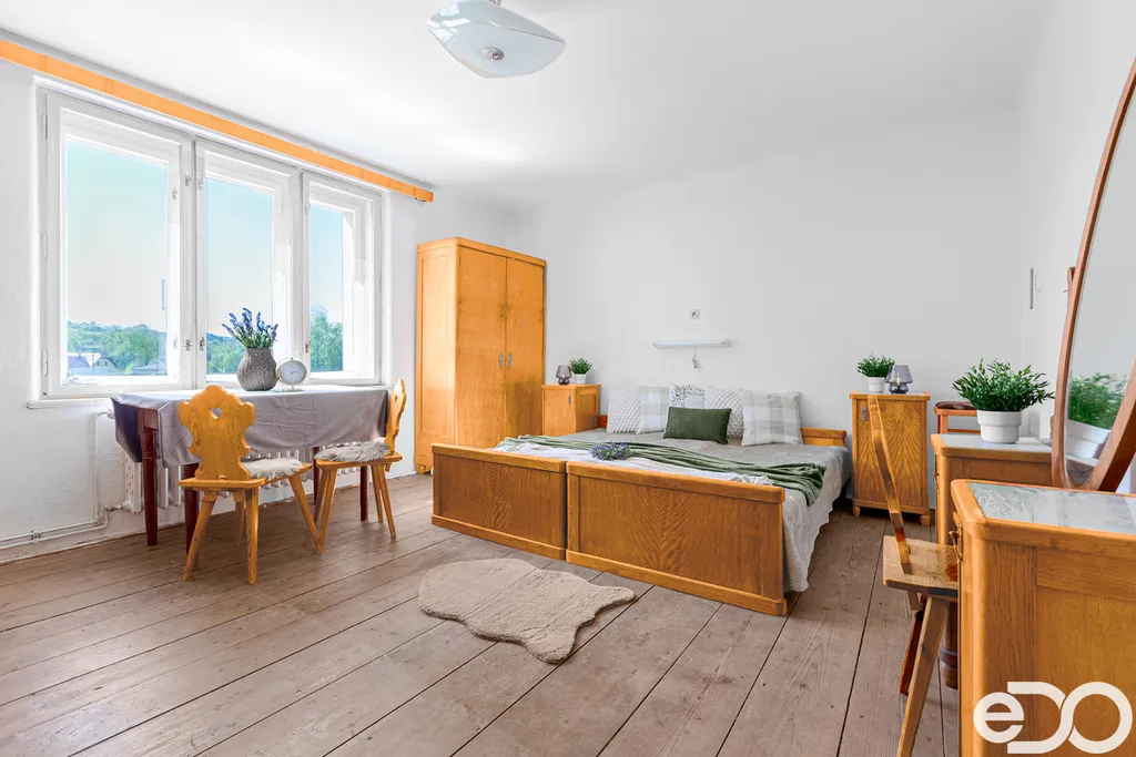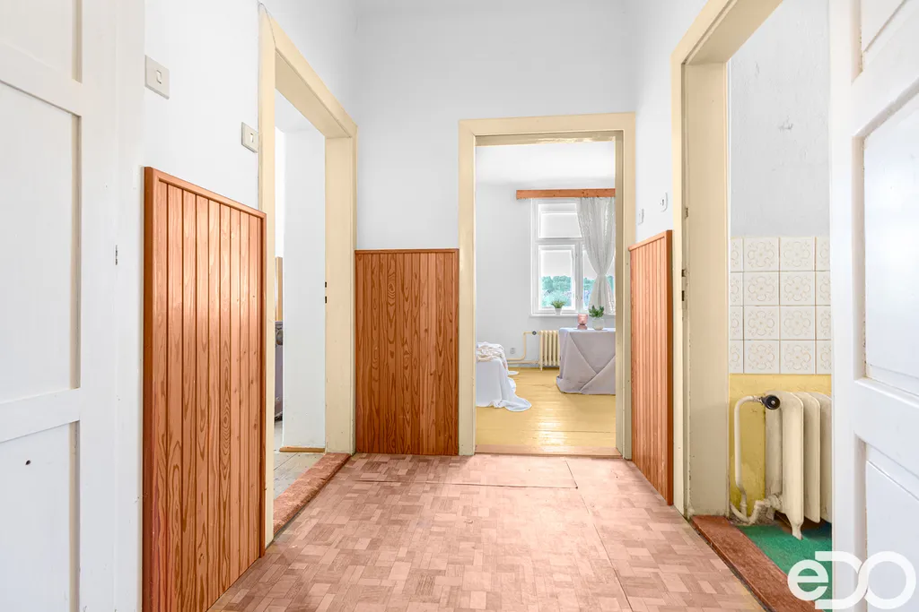 Dům je se sklepem, přízemím a jedním patrem. Dislokace zajišťuje snadný pohyb a přístupnost i pro malé děti. V přízemí naleznete kuchyni, tři prostorné místnosti pro různé účely, jeden menší pokoj a koupelna s WC. V prvním patře jsou dva prostorné pokoje, menší kuchyňka, velká koupelna s WC a rohovou vanou a komora. Z chodby je přístup na balkón s pěkným výhledem na zahradu a okolí.