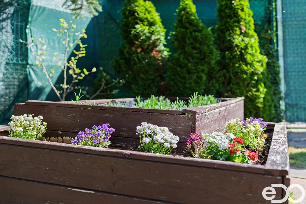 Zahrada je osázená okrasnými dřevinami (túje, smrk, sakura, modřín a další), což zaručuje klid a soukromí. Do zahrady vedou tři samostatné vstupy – z ulice, ze zimní zahrady a přímo z jednoho z pokojů. Zahrada je zatravněná a kompletně oplocená, což ocení rodiny s dětmi i majitelé domácích mazlíčků. Součástí zahrady je také praktický zahradní domek a skleník. Na zahradě je dostatek prostoru k umístění bazénu.