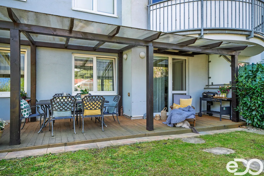 Nabízíme k prodeji elegantní byt o dispozici 3 + kk s podlahovou plochou 83,6 m² a zahradou o velikosti 335 m².