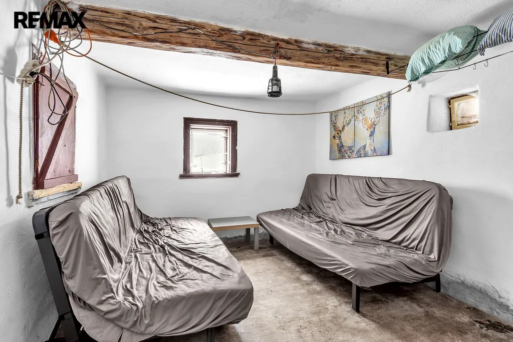 Tenhle útulny domeček je v současnosti využíván k rekreaci. Poskytuje jedno nadzemní podlaží a podkroví. V přízemí se nachází pokojík, kuchyňský kout, malý špajz, vstupní chodba a WC. Zvenku máte přístup do praktického dřevníku, který je součástí stavby. Podkroví slouží především k přespávání, což dodává na romantice a útulnosti vašeho nového domova.