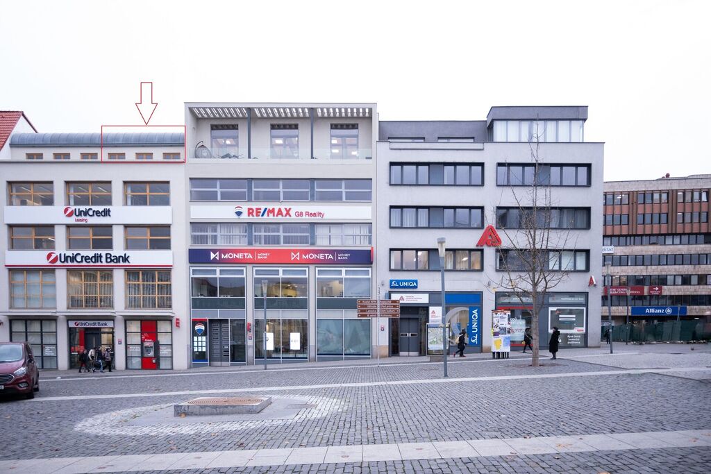 Prostory o velikosti 121 m2 s terasou s výhledem na náměstí jsou připraveny k nastěhování.